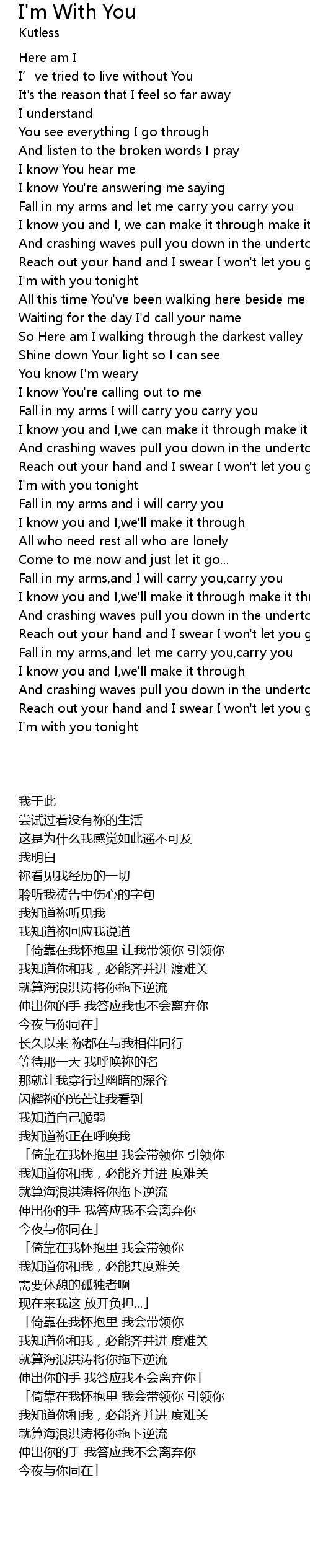 | [01:16.82] | All this time You' ve been walking here beside me |