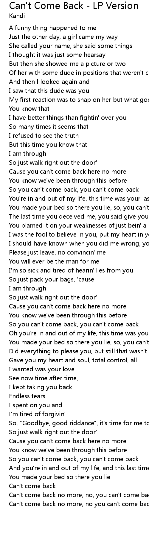 Cause you can't come back here no more |