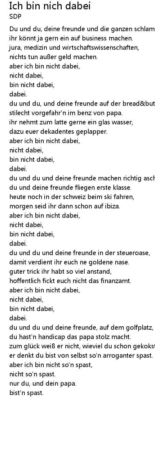 | Song | Ich bin nich dabei |