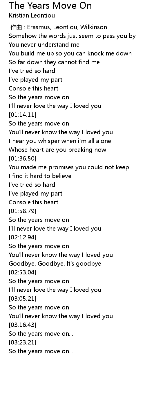 | [03:12.97] | You'll never know the way I loved you |