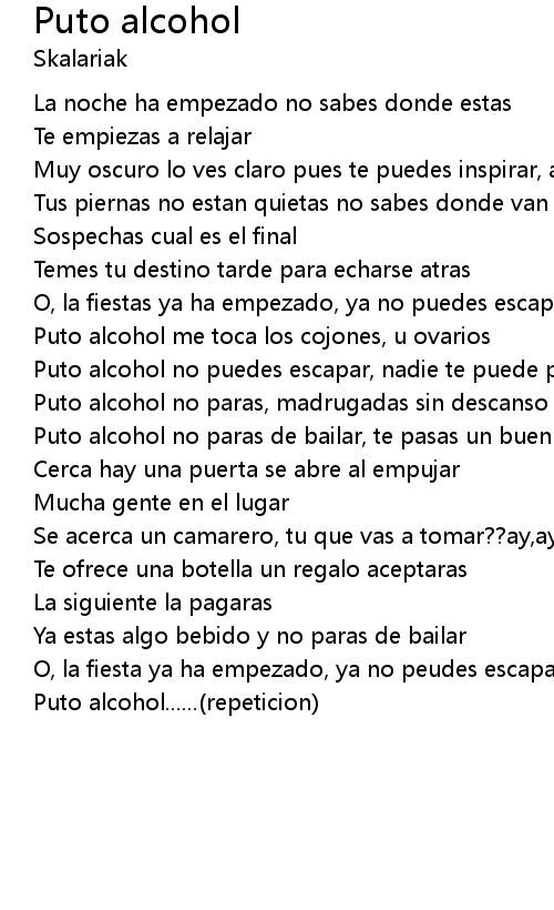 | Puto alcohol no paras, madrugadas sin descanso | |
