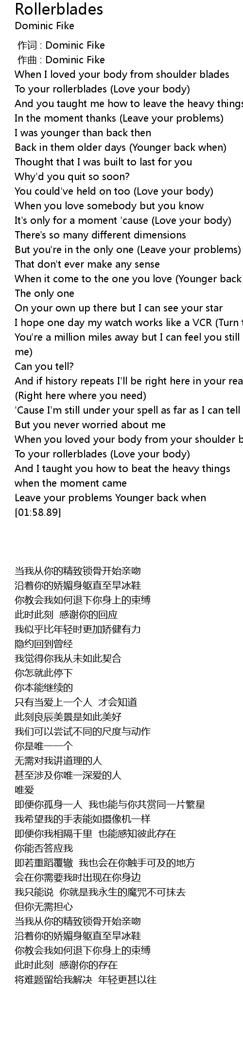 | [01:45.57] | To your rollerblades (Love your body) |