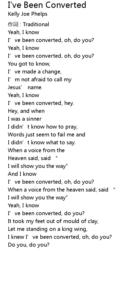 | I knew I' ve been converted, oh, do you? | |
