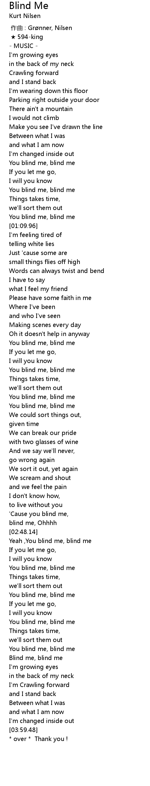 | [02:59.00] | Yeah ,You blind me, blind me |