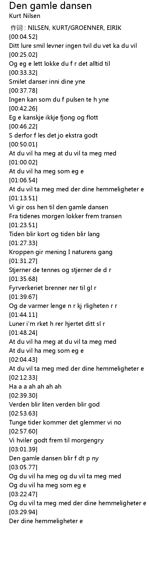 | [03:02.85] | Den gamle dansen blir f dt p ny |