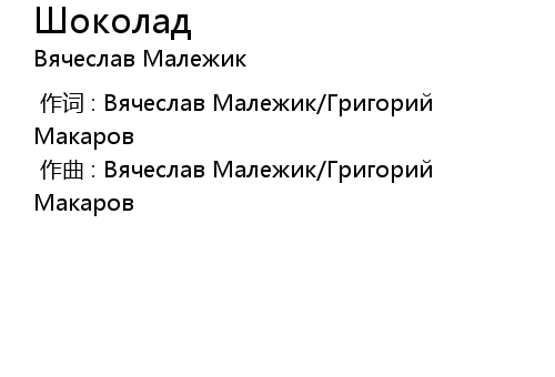| [00:00.000] | 作词 : Вячеслав Малежик/Григорий Макаров |