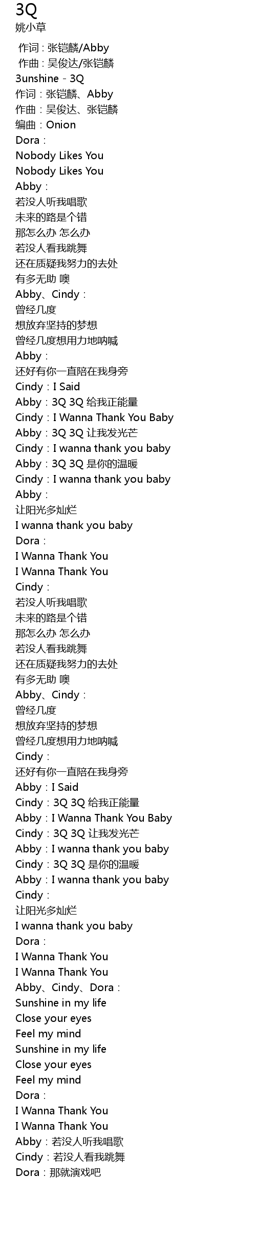 | [02:44.90] | Cindy:3Q 3Q 给我正能量 |