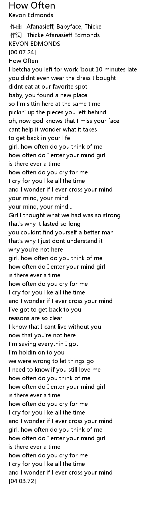 | [00:07.98] | How Often |