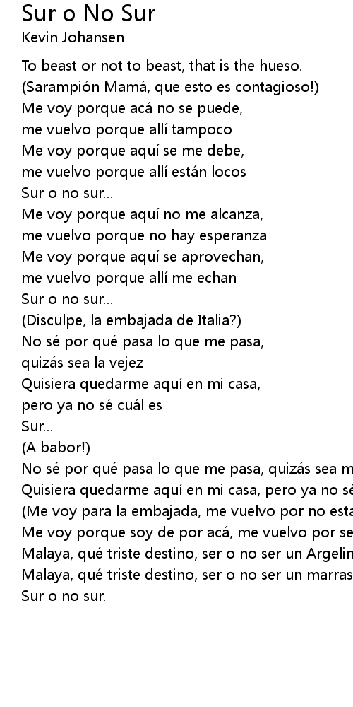 | Song | Sur o No Sur |
