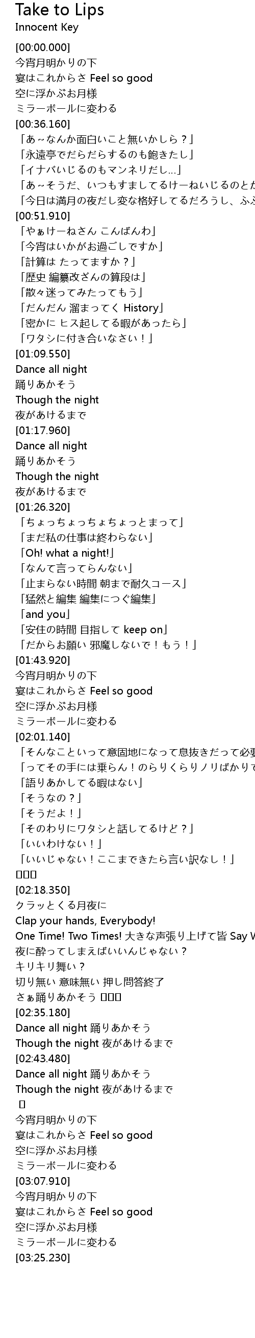 | [01:48.650] | 宴はこれからさ Feel so good |