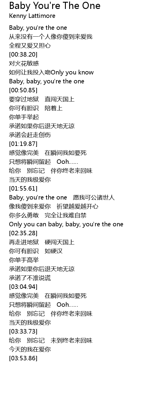 | [02:29.81] | Only you can baby, baby, you're the one |