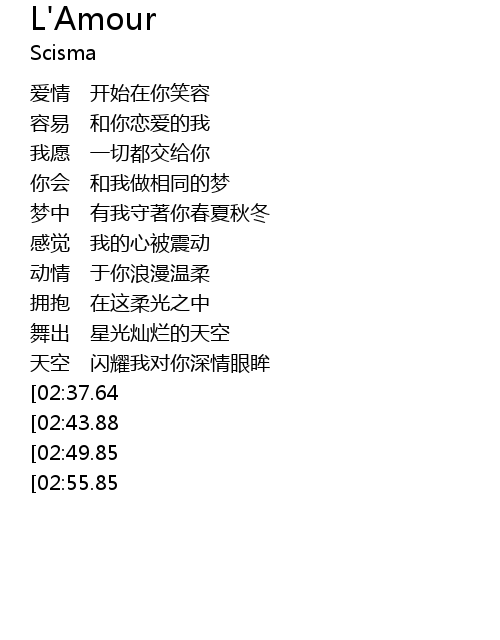 [03:08.17][02:43.88][01:55.41][01:31.21] LA'MOUR 和你紧紧相拥