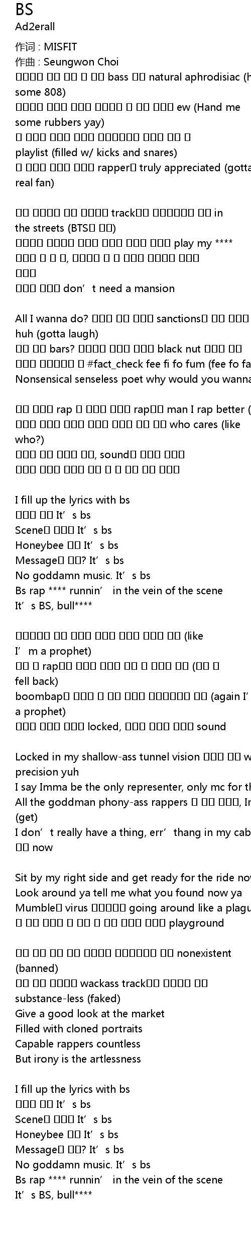 | 길거릴 거닐며 나오는 곡들의 가사를 누가 들어 who cares (like who?) | |