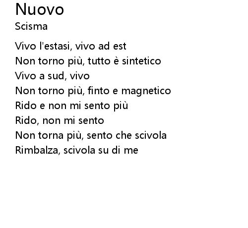 | Song | Nuovo |