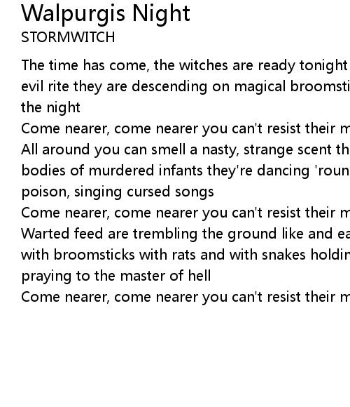 Come nearer, come nearer you can't resist their might at walpurgis night |