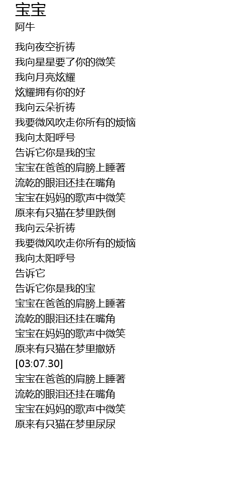 | [02:39.10] | 告诉它你是我的宝 |