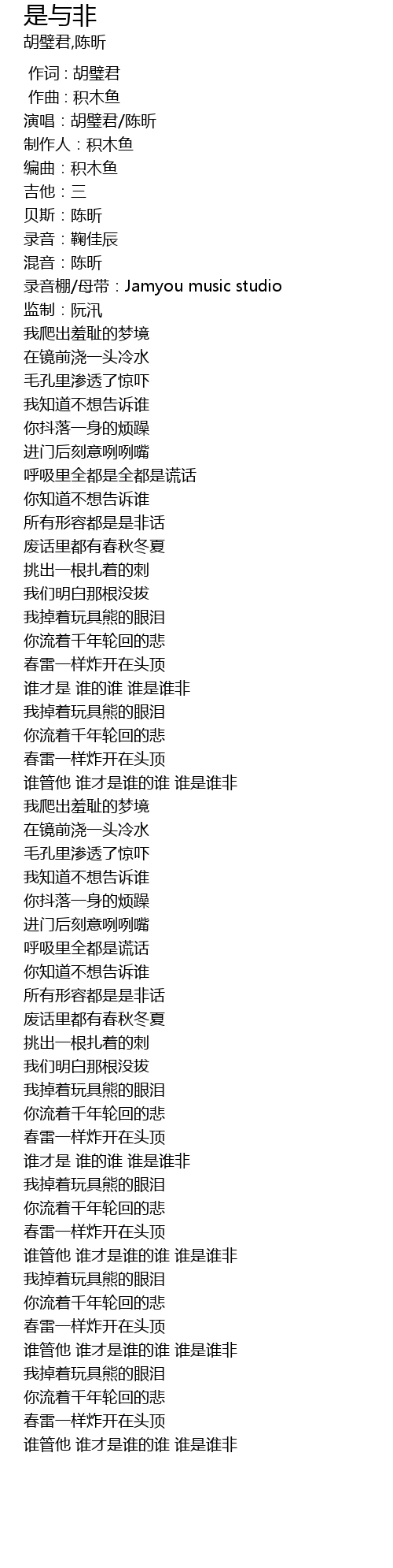 | [01:11.10] | 谁才是 谁的谁 谁是谁非 |