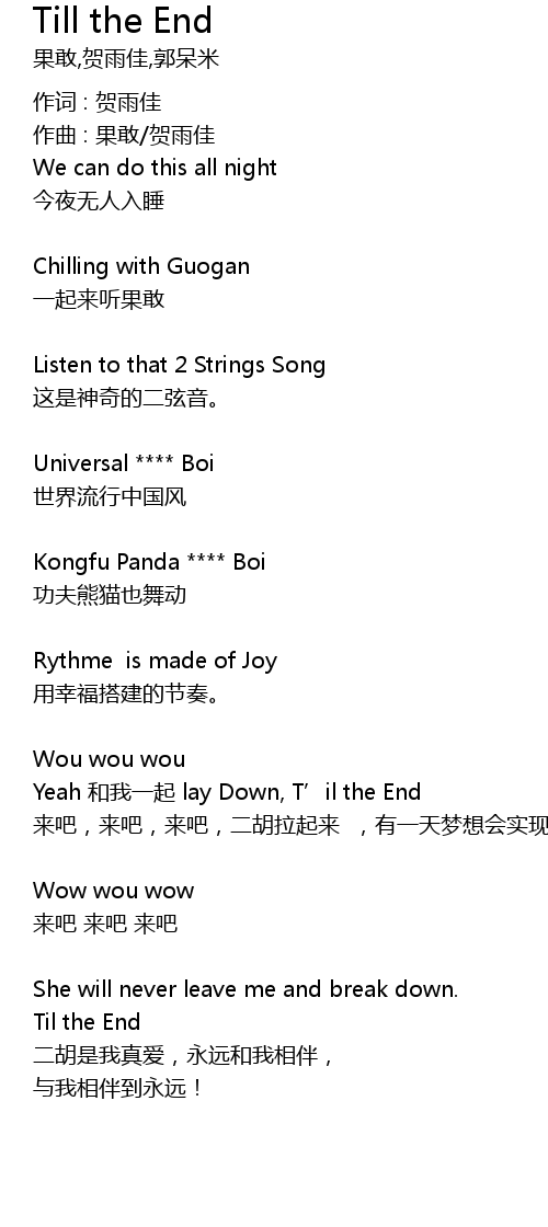 | Yeah he wo yi qi lay Down, T' il the End | |