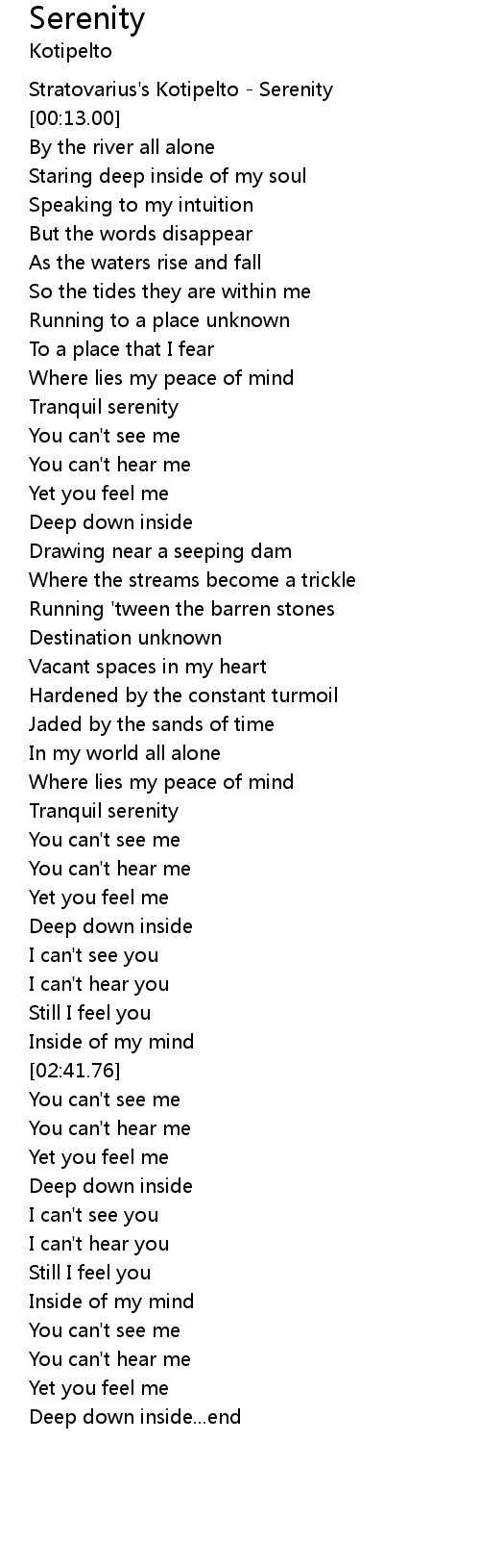 | [00:50.10] | Tranquil serenity |