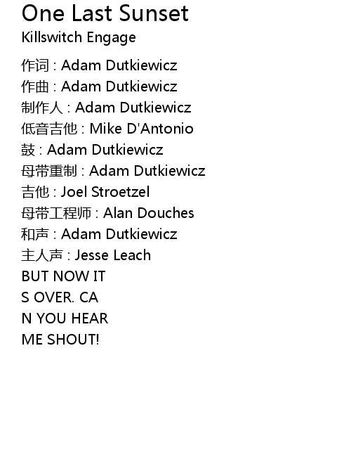 | 作词 : Adam Dutkiewicz | |