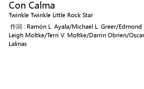 | [00:00.000] | 作词 : Ramón L. Ayala/Michael L. Greer/Edmond Daryll Leary/Shawm Leigh Moltke/Terri V. Moltke/Darrin Obrien/Oscar Edward Salinas/Juan Carlos Lalinas |