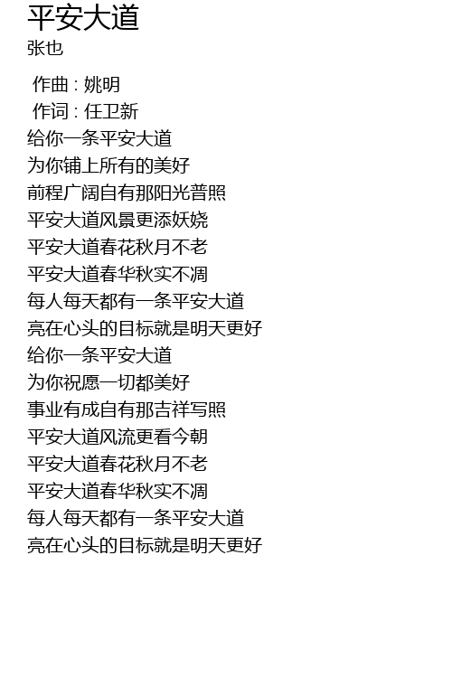 | [01:46.762] | 每人每天都有一条平安大道 |