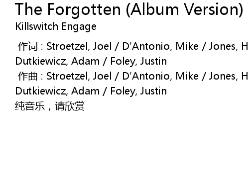 | [00:01.000] | zuo qu : Stroetzel, Joel D' Antonio, Mike Jones, Howard Dutkiewicz, Adam Foley, Justin |