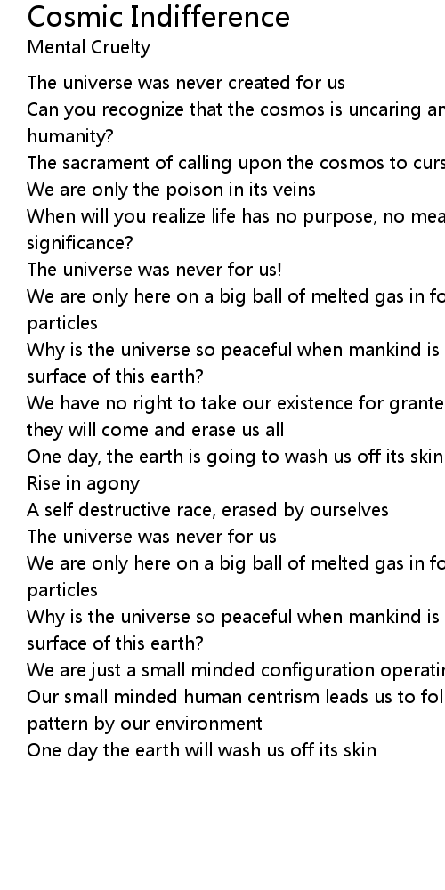 Can you recognize that the cosmos is uncaring and disinterested in humanity? |
