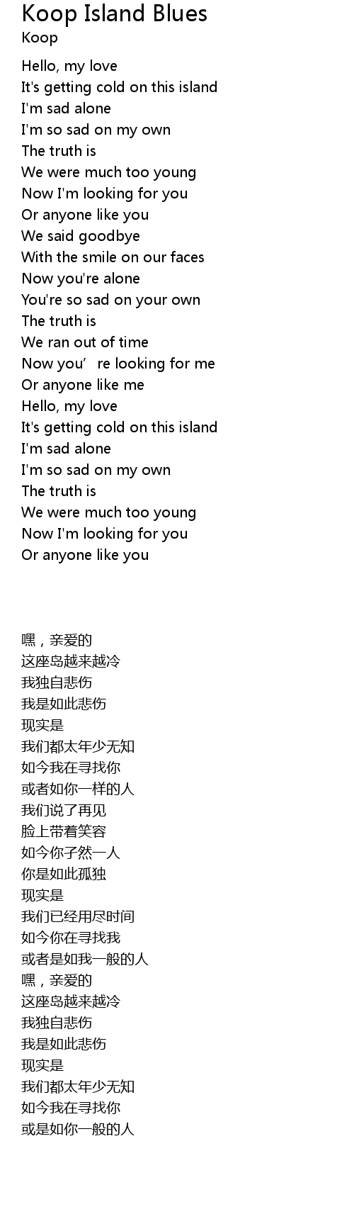 | [00:31.400] | It' s getting cold on this island |