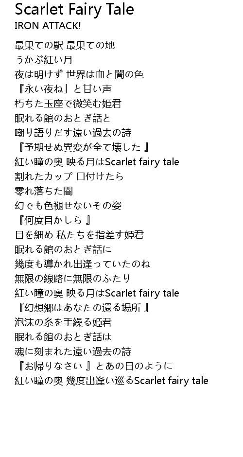 | [01:47.55] | 紅い瞳の奥 映る月はScarlet fairy tale |