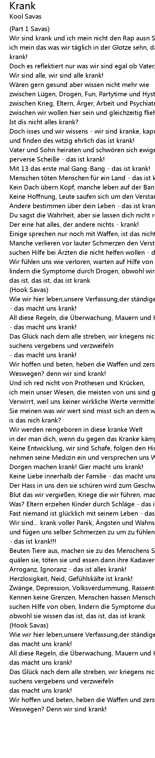 | Wir sind krank und ich mein nicht den Rap ausn Süden, | |