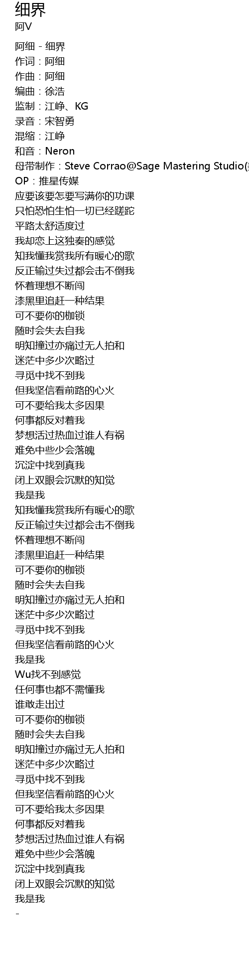 | 作词:阿细 | |