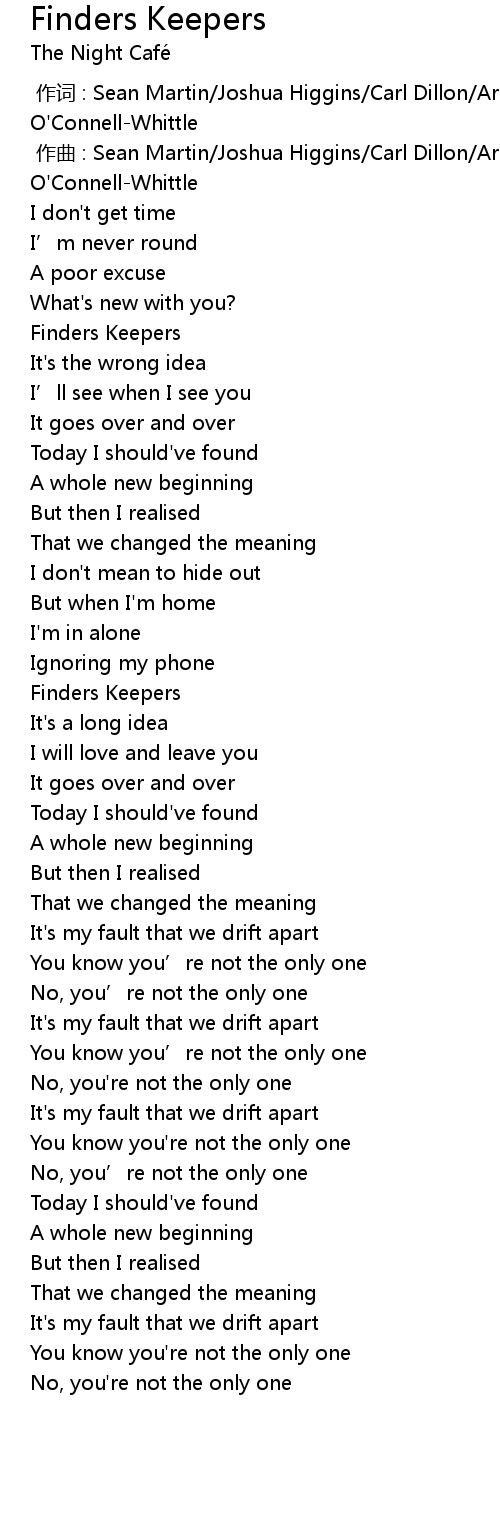 | [00:00.000] | 作词 : Sean Martin/Joshua Higgins/Carl Dillon/Arran O'Connell-Whittle |