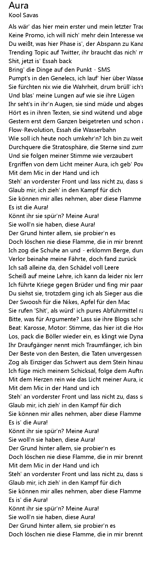 | Mit dem Herzen rein wie das Licht meiner Aura, ich geb' Power | |