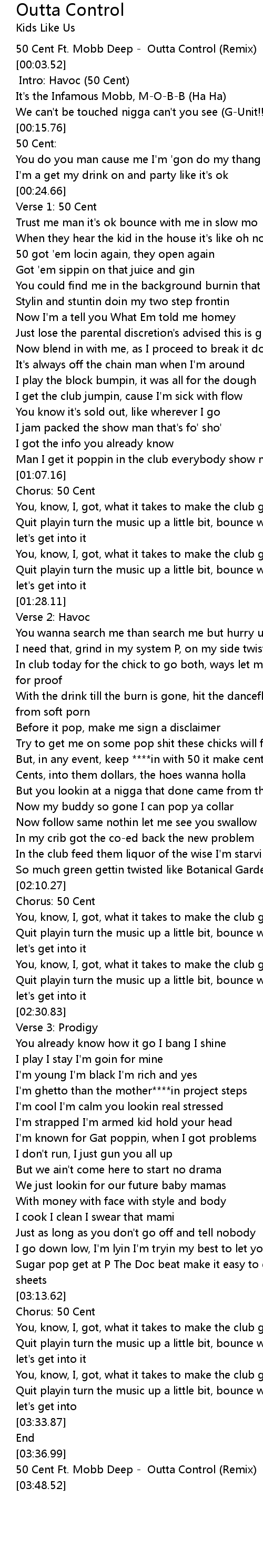 50 Cent Ft. Mobb Deep - Outta Control (Remix) |