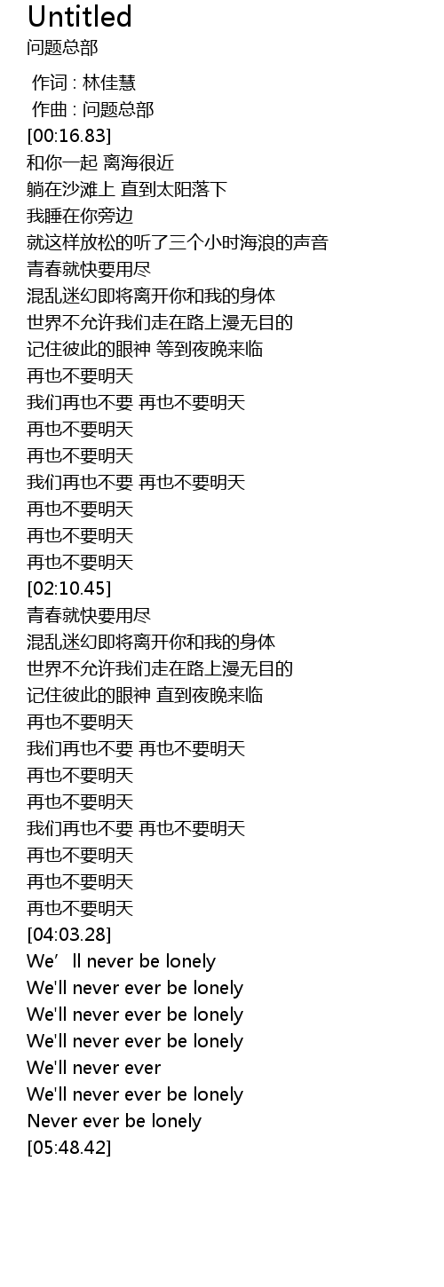 | [01:44.99] | 再也不要明天 |