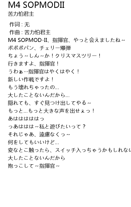| [00:07.249] | M4 SOPMODII zhǐ huī guān huì |