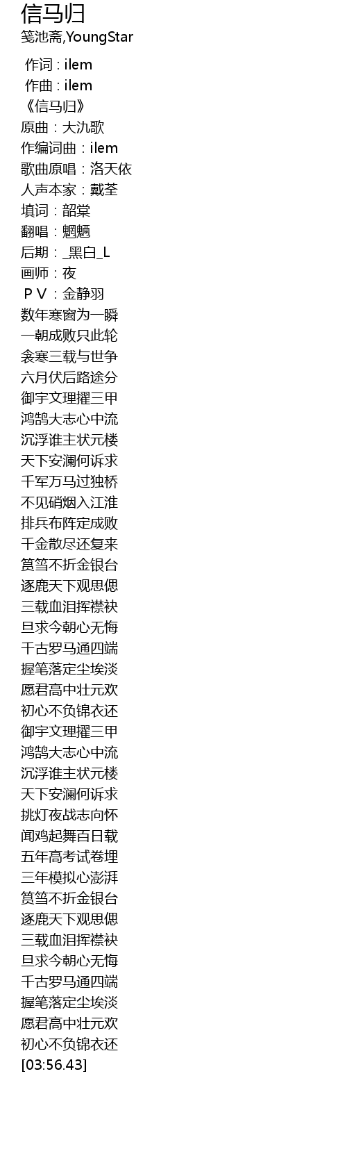 | [03:34.65] | 初心不负锦衣还 |