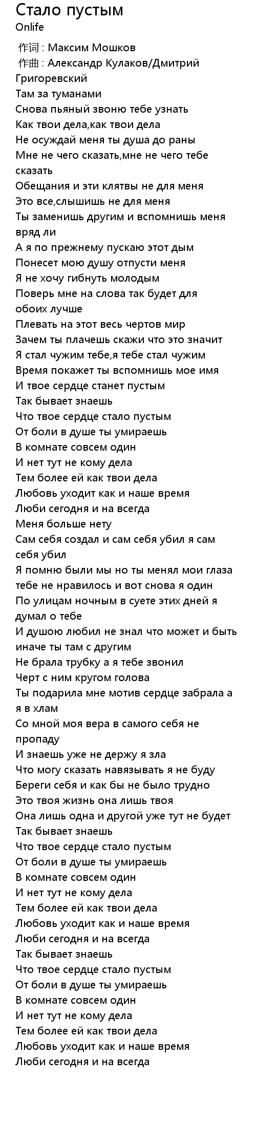Что твое сердце стало пустым |