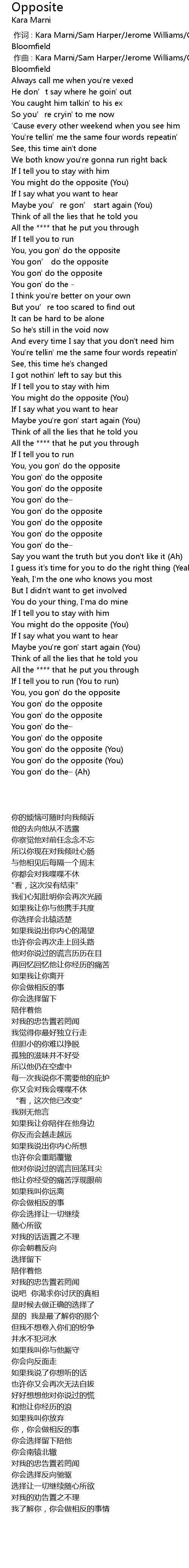 | Song | Opposite |