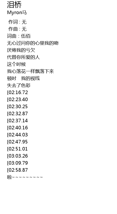 | [01:31.85][03:09.79] | 眼泪狂奔滴落在我的脸庞 |
