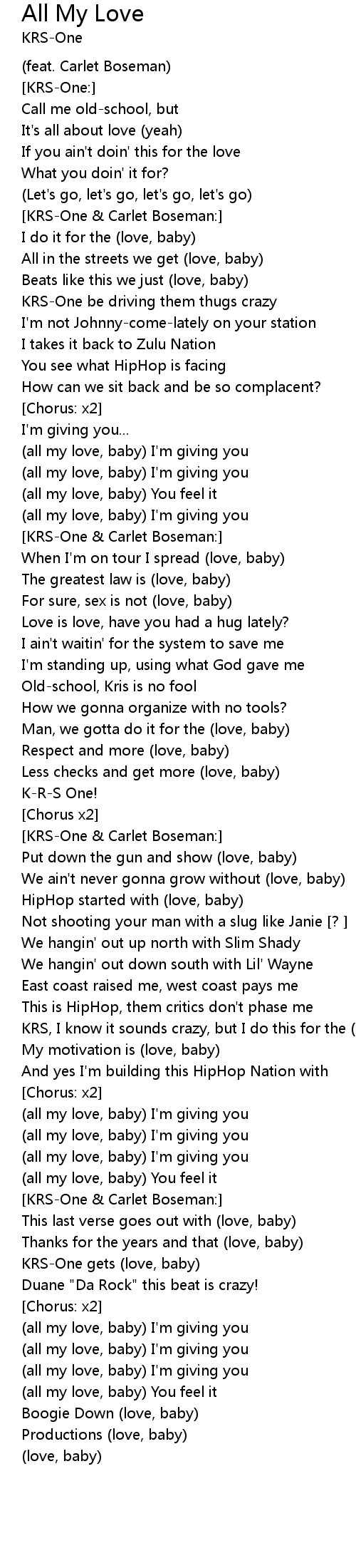 KRS, I know it sounds crazy, but I do this for the (love, baby) |