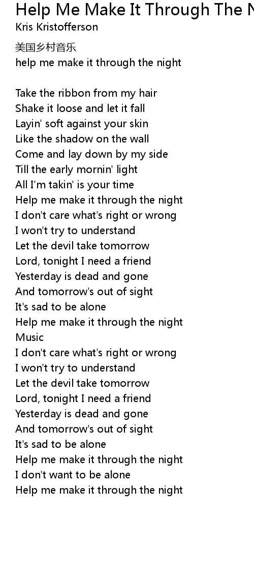 | Help me make it through the night | |