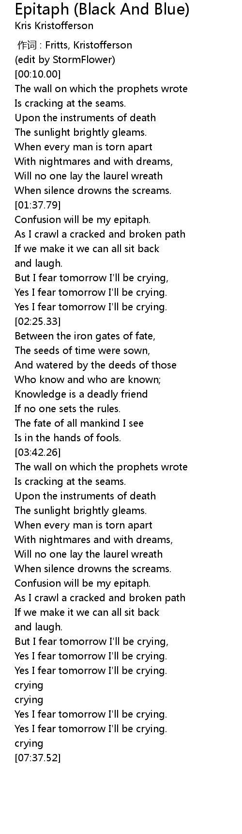 | [00:00.00] | zuò cí : Fritts, Kristofferson |