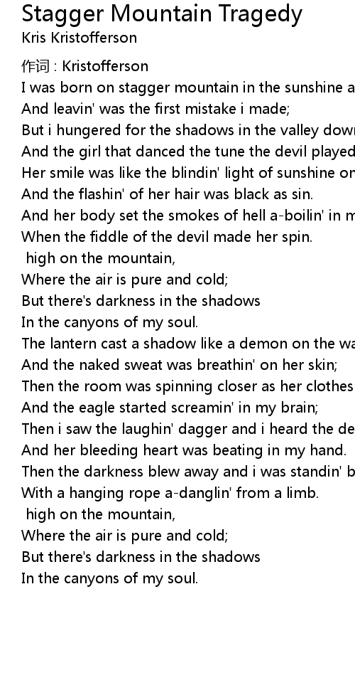 | Song | Stagger Mountain Tragedy |