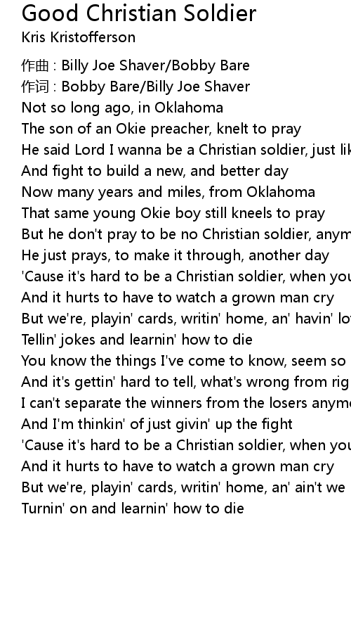 | ' Cause it' s hard to be a Christian soldier, when you tote a gun | |