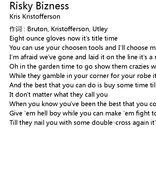 | I' m afraid we' ve gone and laid it on the line it' s a risky bizness | |