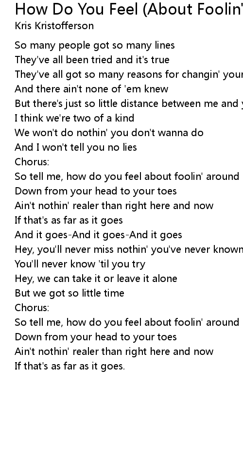 So tell me, how do you feel about foolin' around |