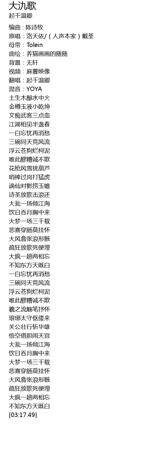 | Song | 大氿歌 |