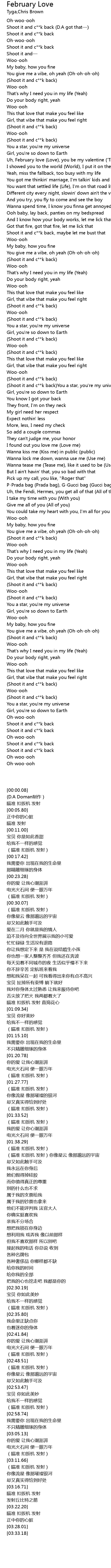 | [00:34.78] | Uh, February love Love, you be my valentine ' Tine |